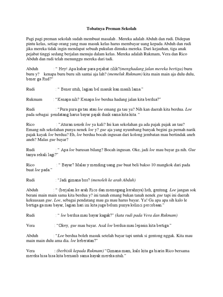 Contoh Naskah Drama Perjuangan. Drama 8 orang pemain KEJUJURAN. DRAMA KOMEDI TOBATNYA PREMAN SEKOLAH UNTUK 7 ORANG.